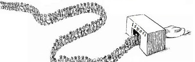Slika 1. Prikaz djece koja se igraju "svadbe" – patrijahalni obred podređivanja žena, ispunjen stereotipnim rodnim ulogama u kojima je naglasak na bijeloj odjeći kao simbolu čistoće žene, mladenka je pokrivene glave, kao i gošće sa rupcima – pokrivala za glavu, kako ne bi uznemiravale muško oko. (Žena – socijalni konstrukt izmišljen kao kontrast muškarcu sa ciljem njegovog uzvišenja.) Obred je relikt srednjeg vijeka, prenosio se zatucanim vjerovanjima iz generaciju u generaciju, i održao se do početka 21. stoljeća kada su ga otkrili znanstvenici sa Kinsey instituta i preodgojili svu djecu plemena 'rvata. Unatoč početnom otporu plemenskih starješina, kroz par generacija pleme će shvatiti civilizacijsku sramotu koju takvi obredi predstavljaju i potpuno ih napustili kako bi prihvatili novu filozofiju - Kinseyizam.